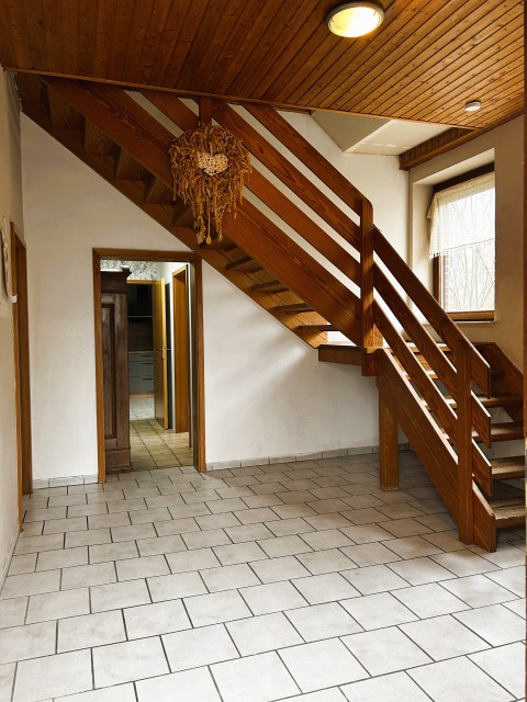 Die ehemalige - ursprünglich ca. 1952 erbaute - Schule wurde späterhin zu Wohnraum umgewandelt und in zwei Haushälften geteilt. Die hintere dieser Hälften kann nun Ihr neues Zuhause werden. Grosser Eingangsbereich/Flur mit Holzgeschosstreppe ins DG, Wohnzimmer, Küche, Wannenbad und ein weiteres, grosses Zimmer im EG; 4 Zimmer, Flur und Duschbad im DG - insgesamt ca. 170 m². Treppe zum (ausbaufähigen) Spitzboden bereits vorhanden. Dieses Haus eignet sich mit seinen 6 Zimmern und zwei Bädern natürlich ideal für eine grosse Familie, kann aber relativ problemlos - mit einer überschaubaren Modifikation in der Diele/EG - auch als 2-Parteien-Haus genutzt werden: eines der Zimmer im DG verfügt über Küchenanschlüsse. Das sehr schöne, weitläufige Grundstück mit Weitblick nach Norden auf eine Pferdeweide bietet Ihnen grossen persönlichen Freiraum und vielfältige Nutzungsmöglichkeiten; ca. 1.500 m²; voll erschlossen. Öl-Zentral-Hzg. (ca. Bj. 2001), Holz-Iso-Fenster, Aussenjalousien, neuwertige EBK aus 2024..... - im jetzigen Zustand sofort bewohnbar - viel Haus fürs Geld - mietähnlicher mtl. Aufwand bei Kauf ! Nur ca. 5 (Elsdorf) bzw. 10-PKW-Minuten (Sittensen) bis zur Hansalinie "A1". Ein Energieausweis befindet sich in Vorbereitung und liegt bei Besichtigung vor.