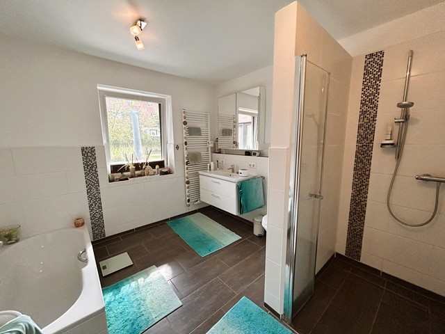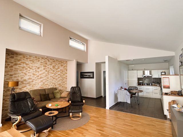 Ebenerdig wohnen ist komfortabel und hat Zukunft ! Dieser ansprechende und moderne Bungalow in gewachsener Wohnlage - Zeven-Süd - bietet vielfältige Möglichkeiten: sei es für die junge Familie mit bis zu zwei Kindern, das gerne grosszügig lebende Paar oder auch für die viel Platz benötigende Einzelperson. Eingangsbereich, Gäste-WC, grosszügiger und heller Wohn-/Essbereich mit offen angrenzender Küche, Flur, Vollbad und drei weitere Zimmer (Schlaf-/Arbeits-/Kinder-) sowie ein wirklich grosser HWR mit praktischer Nebeneingangstür zur Garage - insgesamt ca. 134 m². Teilweise bodentiefe Fenster mit Dreifach-Verglasung, Fussboden-Heizung, zeitlose Einbauküche, besonderes Raumgefühl durch nach oben hin offenes Pultdach im Wohnbereich, hochwertige Bodenbeläge in Parkett und Fliese. Schönes und ansprechend angelegtes Grundstück in Südlage; ca. 635 m² - in der Nähe zu verschiedenen Schulen, einem Kindergarten und auch den Einkaufsmöglichkeiten und Arbeitsplätzen in Zeven-Aspe. Insgesamt sehr gepflegt und ständig instandgehalten - das Gebäude wurde seit Erstellung lediglich durch eine Partei bewohnt. Ideal für einen neuen Eigentümer, der die Vorzüge eines neuen Hauses geniessen möchte, ohne jedoch selbst bauen zu müssen bzw. ohne darauf angewiesen zu sein, dass in Zeven tatsächlich eines Tages ein neues Baugebiet erschlossen wird. Die Übergabe ist voraussichtlich ab 04/26 - nach Absprache evtl. auch früher - möglich.