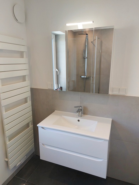 In zentraler Lage befindet sich dieses neu angebotene Haus - Einkaufsmöglichkeiten, Schulen und Kingarten etc. sind fußläufig erreichbar. Das Reihenendhaus wurde hochwertig modernisiert und ist fast mit einem Neubau vergleichbar: Wärmepumpe, integrierte Be- und Entlüftung, neue Bodenbeläge (Fliesen & Designbelag), weiße Innentüren, Innenwände mit Feinputz und hell gestrichen, hochwertige L-EBK mit Gefrierschrank und Mikrowelle, schickes Duschbad und Gäste-WC, elektrische Außenjalousien, zum Studio ausgebauter Spitzboden. Folgende Aufteilung erwartet Sie: Im EG: Wohnzimmer mit Zugang zur Terrasse, Küche mit EBK und Platz für einen kleinen Esstisch, Gäste-WC und Flur. Im OG ein großes Schlafzimmer mit angrenzendem Balkon, zwei weitere kleinere Zimmer, Duschbad mit Fenster und Flur. Der Spitzboden besteht aus einem großen Studio-Zimmer; insgesamt ca. 114 m² Wohnfläche. Das Haus ist unterkellert - dort befindet sich auch der Anschluss für die Waschmaschine. Desweiteren gehört ein Garten zur Alleinnutzung und eine Garage zum Mietobjekt. Die Kosten für Strom, Wasser/Abwasser, Telefon und Internet rechnet der neue Mieter direkt mit den Versorgern ab. Haustierhaltung ist in diesem Mietobjekt nicht möglich. Das Haus kann ab Mai 2026 neu gemietet werden !